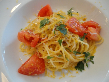 シラスとトマトとカラスミの塩パスタ