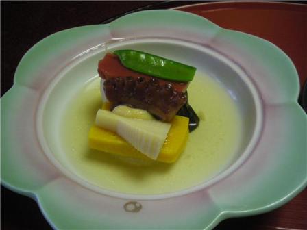 タケノコ、キヌサヤ等季節の野菜が目にも鮮やか