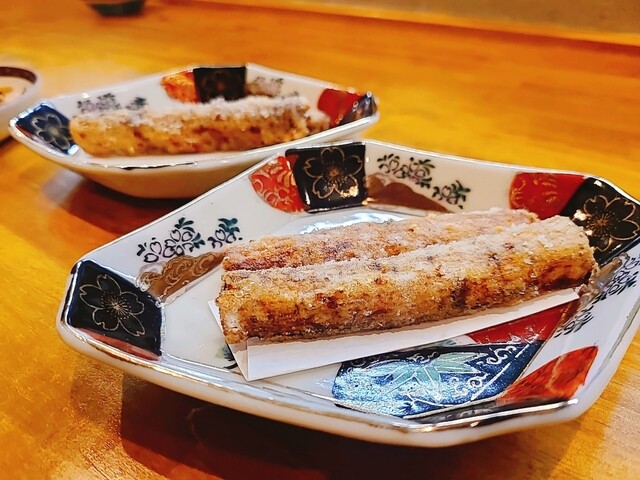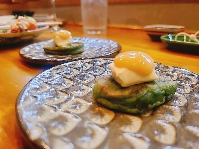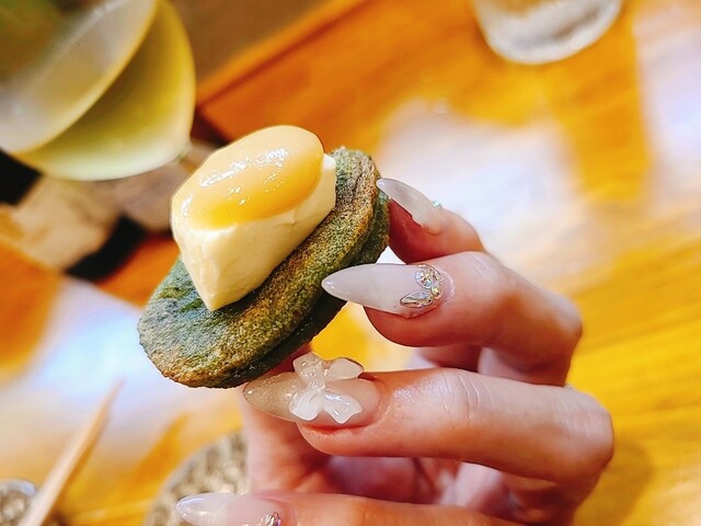 稚鮎とタラの芽天ぷらペコリーノチーズ