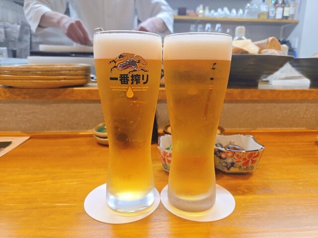 1杯目の綺麗で美味しい生ビールはやっぱり最高です。
