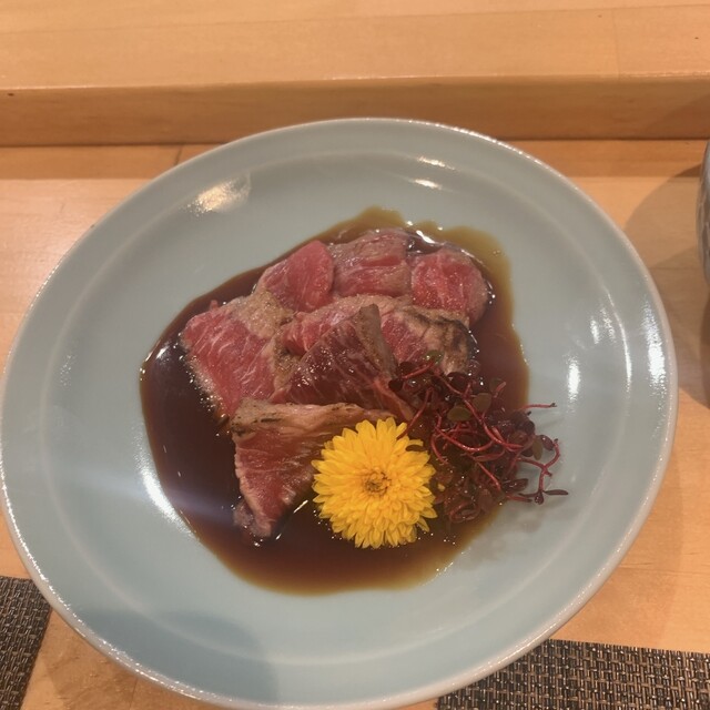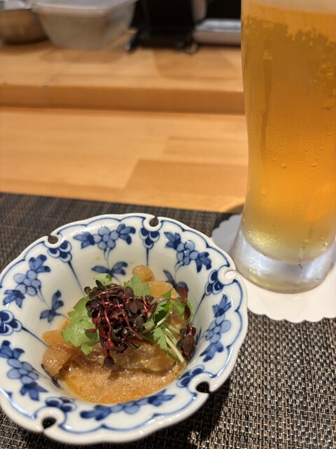 いつもはコースを頼むことが多いですが、この日は女子4名でアラカルトをシェアしていただきました。本日のおすすめボードにあった「本マグロホホ肉のタタキ」がいきなり美味しい。4人で分けると少しづつなのでもっと食べたいけど、色んな種類を食べられるのがいいですね。「カスベ」って知らなかったのですが、北海道のエイのことなんですって。唐揚げ美味しかった!
