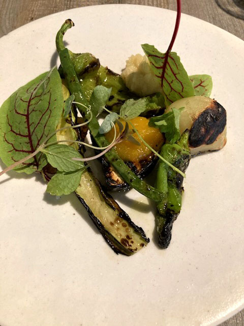 野菜の一皿は焼いた根菜類と黒米、生のハーブをほんのりとした塩味で自然を味わいます。