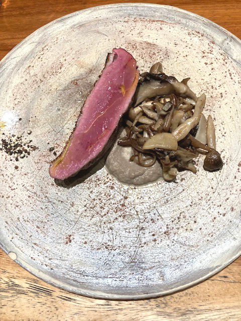 炭火の香りが心地よい鴨肉もキノコのソースと相性ばっちり。