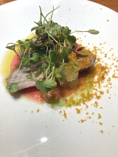 まずは一皿目の群馬麦豚の生ハムと洋梨でびっくりの美味しさです。