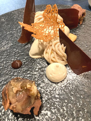 モンブランの要素をばらばらに盛り付けた一皿。