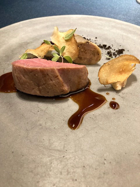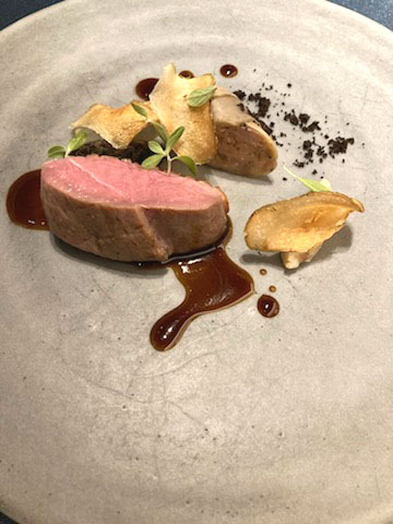 ナイフがスーっと入る素晴らしい柔らかさの仔鴨が美味しい。