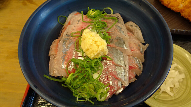 お腹が空いていたので迷わず満腹御膳(1,200円)を注文しましたが、アジフライは単品(280円)でも食べられるので、このお店を満喫するためには、ニ食感活あじ丼(980円)にアジフライ単品(280円)を付け、ご飯を大盛り(+200円)しておけば、2種類の食感のあじ丼の満腹御膳を楽しめて良かったのかも・・・と後で気づきました。