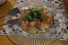 さっぱりカルパッチョは炙られたマグロが香ばしく、しっかり野菜も摂れて美味しいし、