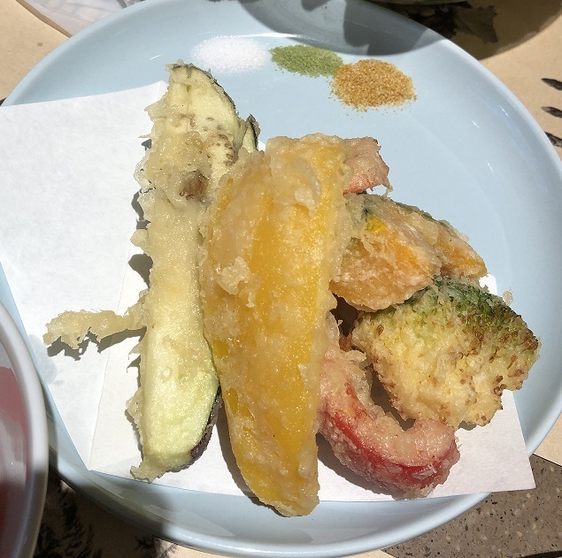写真ではあまりお皿の上に無い印象ですが、天ぷらや焼き野菜はカウンターでお願いして