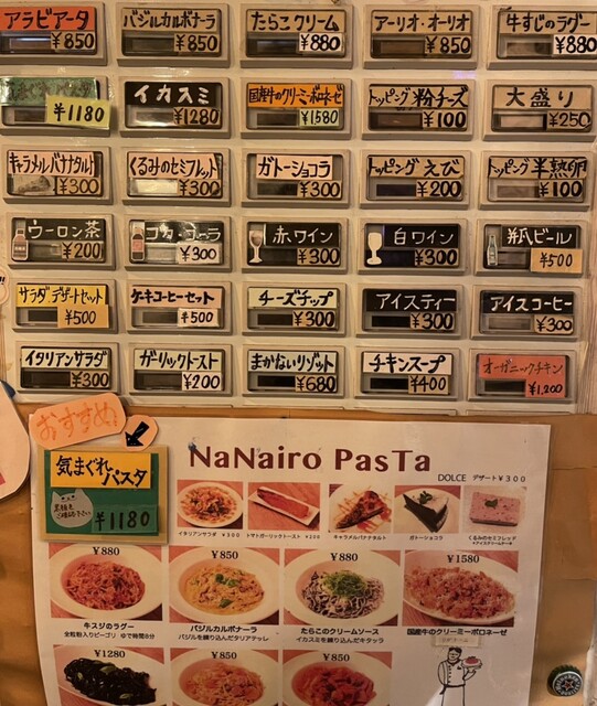 食券&L字カウンター「ラーメン屋スタイル」の手打ちパスタ屋さん♪一人でも美味しいパスタを楽しみたいユーザーに突き刺さる『ナナイロパスタ』最強説。レギュラーメニューに負けない☆気まぐれパスタ目当ても蟻。