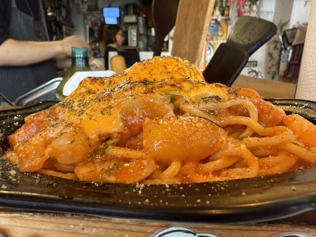 チーズナポリタンにプリプリ海老も・半熟卵もマッチしていました。