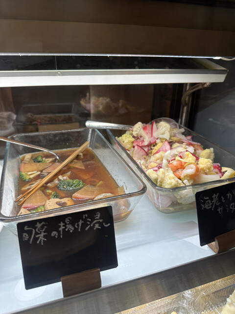 こちら、お総菜屋さん? テイクアウトやっているみたいなんですが、飲み仲間の親分が常連として通っているようなので、イートインもできるようなんです。
