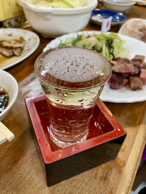 知人からこちらのお店がとても美味しいとお勧めされて訪問させて頂きました。お店の雰囲気は開放的で入りやすい昭和の居酒屋さんの雰囲気。仕事帰りのサラリーマンが好きそうな感じで自分もワクワク♪最初なんで一番人気のAセット(ヤサキ刺、ホッペ、ホルモン、牛タン)と生ビールを注文。まずはヤサキ刺が来て実食。ヤサキ刺は心臓の刺身でした。全く臭みなく新鮮さがわかる一品、食感も最高!二品目はホルモンのタレ焼きが到着。シマチョウとマルチョウの間くらいの適度な脂ののりがあり食べやすくタレの味付けもいい具合でした。三品目はほっぺが到着。豚のホホ肉?かなぁと思いながら脂身のある白茹でした豚肉スライスをネギポン酢で頂きました。なんと全く臭みなく脂が甘くたまらん♪ネギポン酢で食べてるのでさっぱり頂けてメチャ旨い。最後は牛タン。厚切りの牛タンを香ばしく焼いてサイコロカットしている感じです。こちらはちょっと塩をつけて食べると肉の旨味と香ばしさが感じられ感動。あとお酒はダバダ火振りが置いてあったので私は水割り、友人はソーダ割りに変更。すっきり甘味があって脂っぽくなりそうなホルモンに合いますね♪あと店員さんにお勧めされた日本酒でゴリマッチョを頂きました。新酒で期間限定ということで注文。微かに発泡しててシャンパンのような風味で飲みやすい!若そうな店員さんでしたがしっかり説明して頂きちゃんとお酒の味や良さを伝えて頂けるので色んなお酒にもチャレンジし易いかなと思います。結局、Aセット以外はお腹いっぱいになってしまい他の単品料理が頂けませんでしたので、次回は単品注文で行きたいですぬ。料理もお酒も最高でした。ごちそうさまでした。また寄らせて頂きます。
