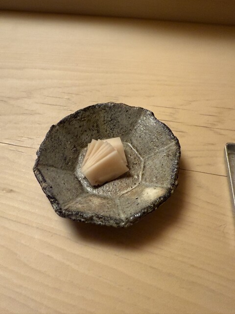 香り良いえびいもからスタートし、刺身へ。白子、茶碗蒸し、あん肝&牡蠣の味噌漬け、焼き魚がにぎり前のおつまみり。牡蠣の味噌漬けなんて初めて、水分が飛んでいて味が凝縮された感じがする。