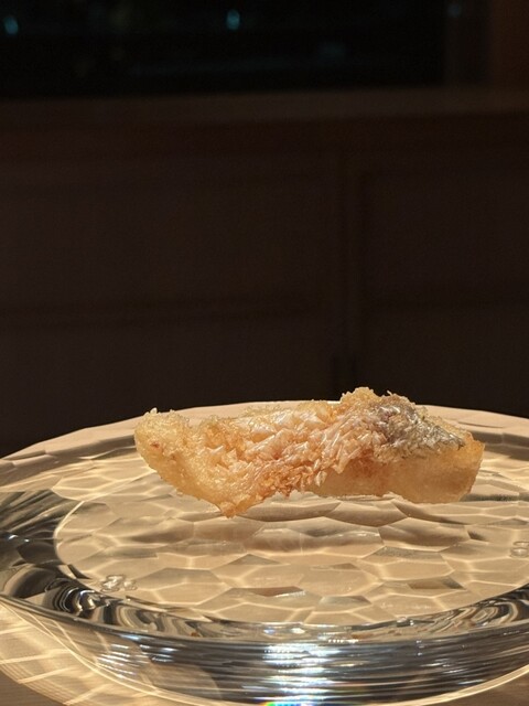脱水、蒸らし、揚げ、焼き切りと全ての段階で日本一の技術を。このプレゼンテーションを終始見ながらいただける。魚はかなりふわふわ、薄衣というよりランダムな衣を食べさせる感じ。赤むつはスパイスを使って仕上げる珍しさ。鰻はかなり印象的、川に登る前の海でしか育ってないものを使用。泥臭さはないであろう。これをその場で捌いて揚げる。鰻のタレと大量のワサビを纏わすがそれでも鰻の強さが勝っているかワサビの辛さを打ち消している、というか両者の絶妙なバランスだと思う。