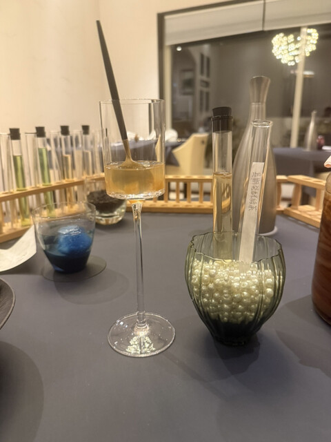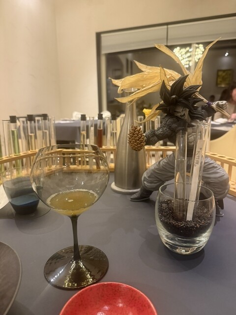 またペアリングは料理と同じ値段だけどつけるべきだと思った。20種類は出ただろうか。ペアリングは香りがすごく良い。大豆をエスプレッソマシンで挽いてしまったり熊のエキスを使ったり更には虫がたくさん登場笑