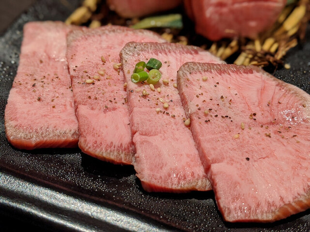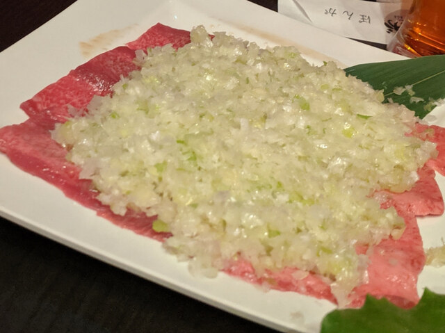 薄切りのタンの上にたっぷり敷き詰められたねぎ。