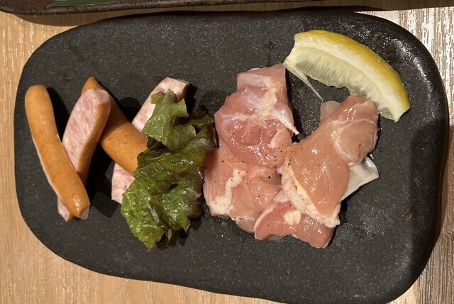 まず、牛タンとブランド牛と野菜の盛り合わせが来ました。牛タンにはネギで調理が施され、牛肉の各部位が詳細に説明されていました。キムチも頼んで絶妙な白菜キムチが来ました。牛肉だけでも大変満足したのですが、ついでホルモンの五種盛り合わせと地鶏、ウインナーが来てご飯(中)をお願いしました。
