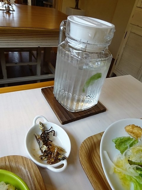 冷水のピッチャーがかわいいね♪サービスの佃煮の美味しい事☆彡~(#^.^#)