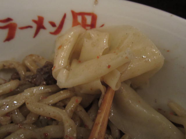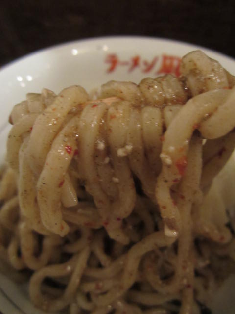 麺自体にたっぷりと黒い粉と麻婆がからみついています。