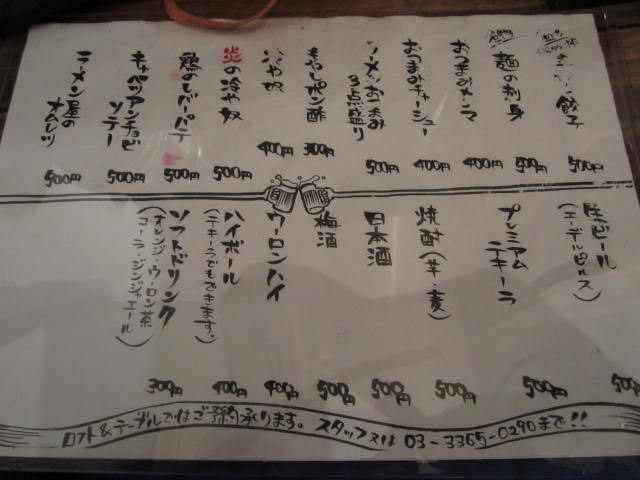 ドリンクやおつまみメニュー。