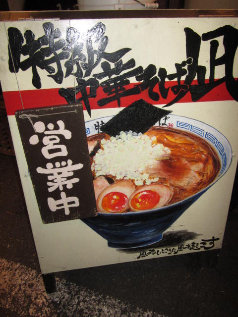 道に出ている1Fの特級中華そば凪の手書き看板。