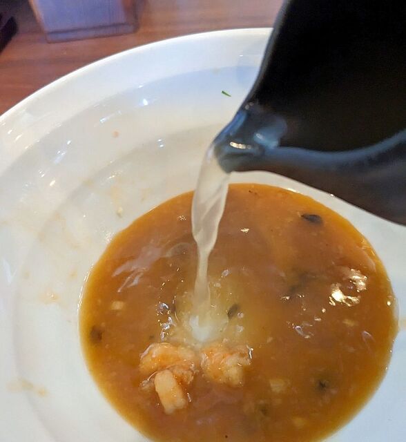 もちろんにこやかに提供された。ただ、コーヒーについてくるミルクピッチャーくらいの大きさなので、どんぶりの方につけ汁と濃度バランスを考えて〆の割りスープを作る感じになる。すると、なんだよつけ汁にエビのプリプリした身がプカプカいくつも浮いているじゃないの。これを残さずすくい取り、〆の一杯を飲み干して、大いに満足いたしました。