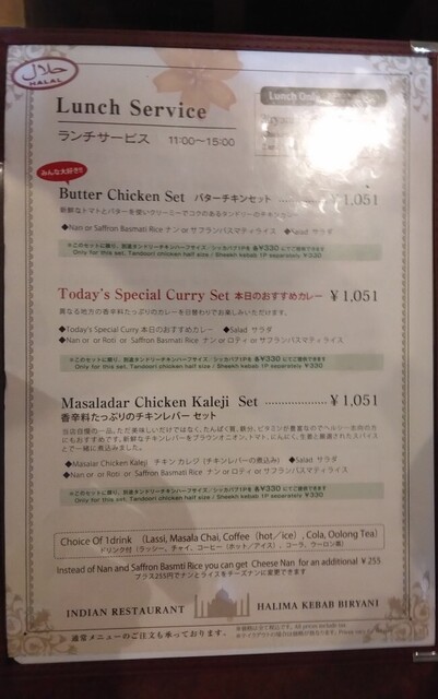 また、店名にもなっているビリアニセットが各種 \1,030、ニハリやバターチキンも \1,030となっています。