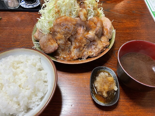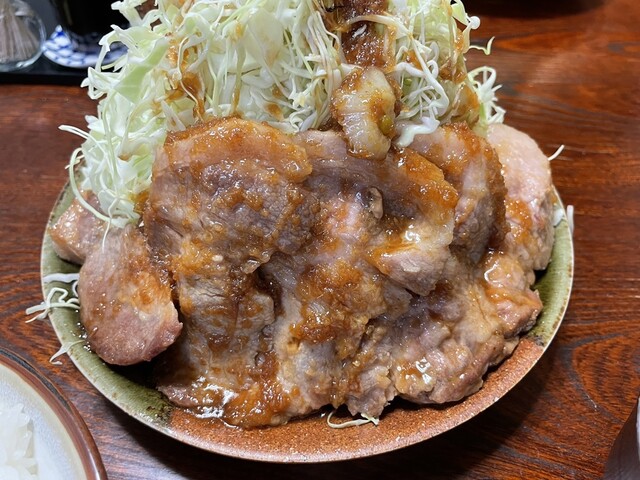 厚切り豚肉の生姜焼きとメガ盛りキャベツ