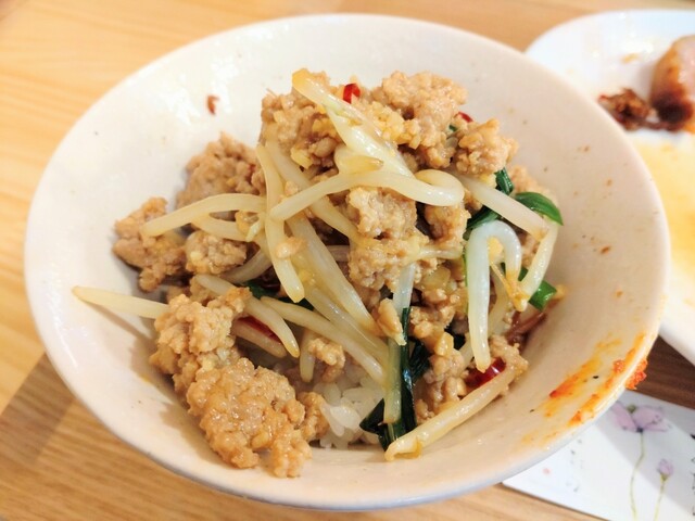 麺を食べ終えると台湾ミンチが残るので、これをご飯の上に。