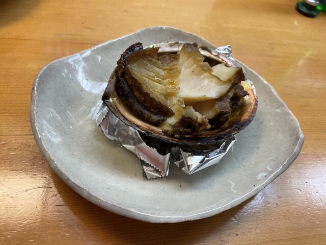 カウンターにあった あわびの味噌煮、ほんのり甘く、山椒の葉っぱと味噌が相まって