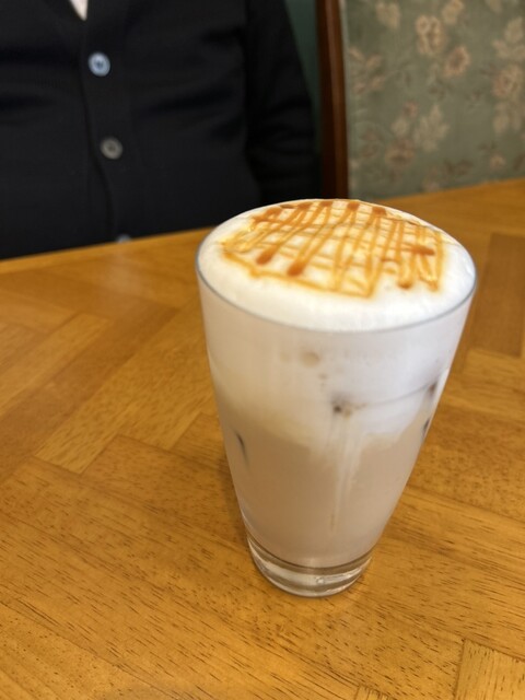 食後のラテ、アイスキャラメルラテも美味しかったで〜す♪