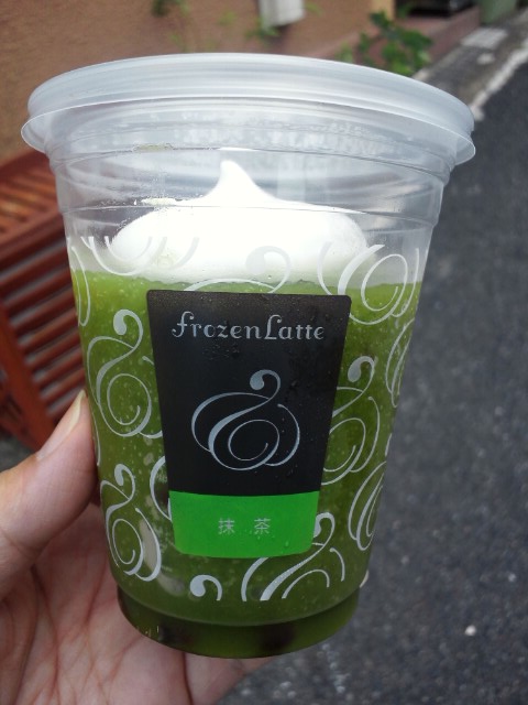 食後のドリンクは、ローソンのレンジでチンしていただく抹茶フロートだよぉ〜ん
