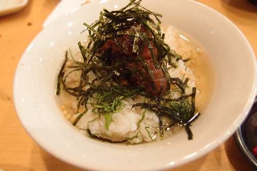 さっきのかき煮が乗っかってるねん!お茶ずけサラサラ〜て感じかな。