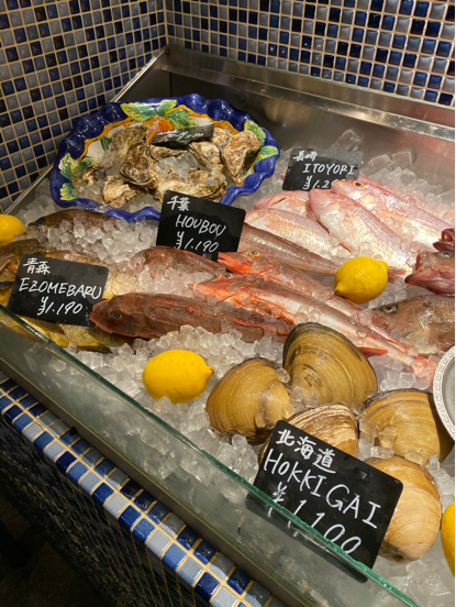 最近、肉が多かったわたくし。綺麗で美味しそうな魚貝の皆さんを目にすると、テンション上がる。