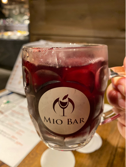 さて、お飲み物ミオバール赤でお代わり。お酒がすすむわ。