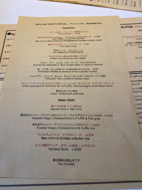 プリフィクスのコースにしましたが、基本メニューの他に、おススメメニューがあります。