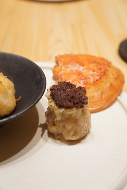 ②香箱ガニの焼売と白子のフリット