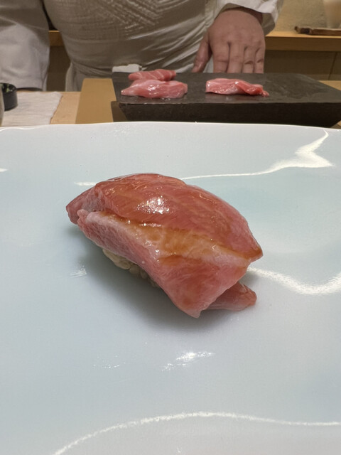 テンポ良く出てくる温度が完璧にコントロールされた鮨がどれもこれも美味しい。