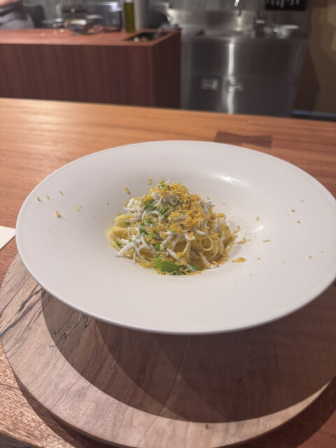 1枚目写真の鮑の冷製パスタもソースの絡み具合も全てが最高。