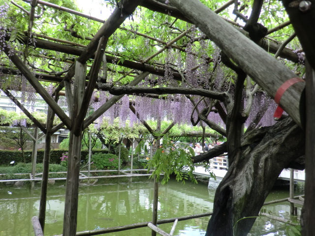 初めて行ってみました。亀戸天神の境内は、藤棚が綺麗です♪ (2012/05/04)