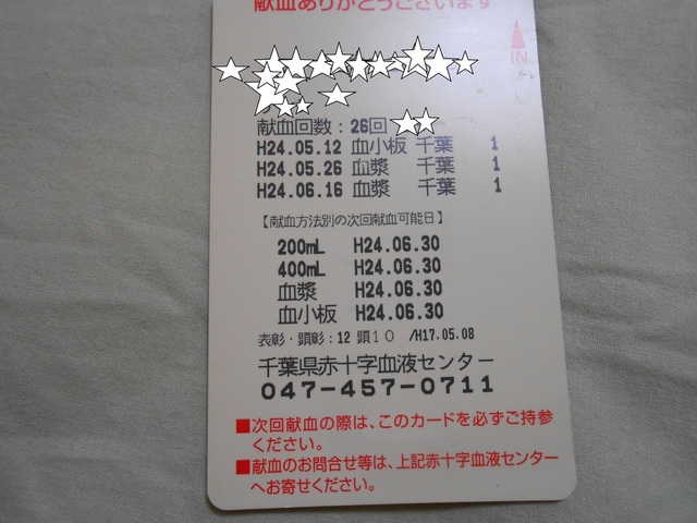 趣味の献血に行ってきました(*^^)v (2012/06/16)
