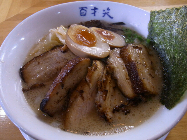 注文したのは「とんこつチャーシューラーメン(塩味)」+「煮玉子(半分)」と「百才飯」