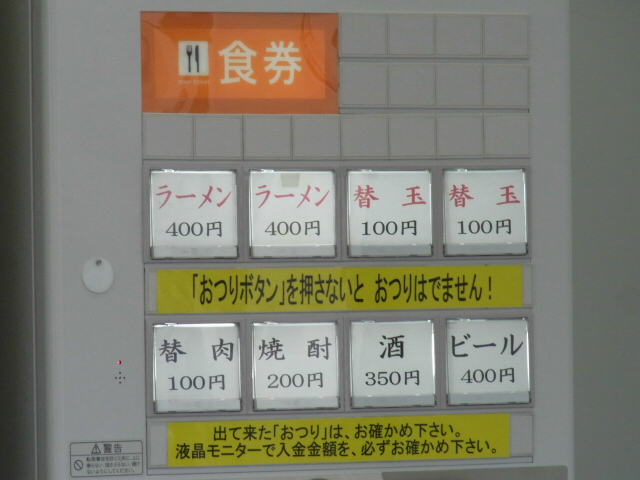 ラーメン、替玉、替肉ばかりが目立つ券売機、