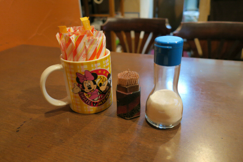 卓上セットはシンプル、砂糖と灰皿のみ。