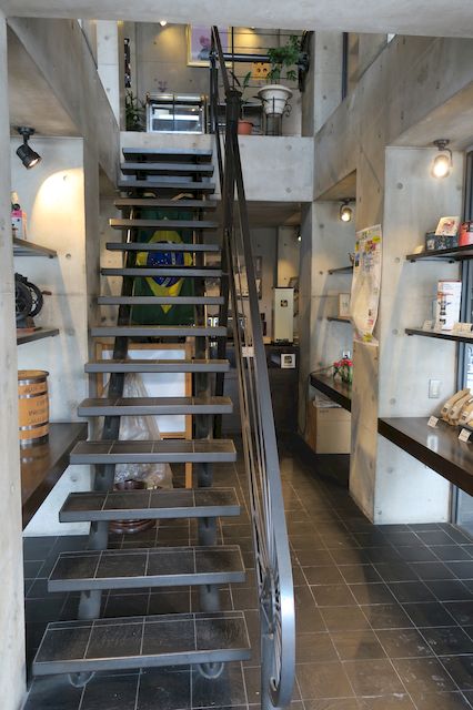 幅狭で足下が暗い階段にちょっと怖じ気づきながら2階へ