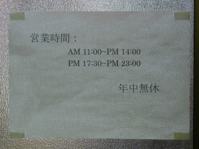 年中無休で、営業時間は11:00〜14:00、17:30〜23:00だそうです。