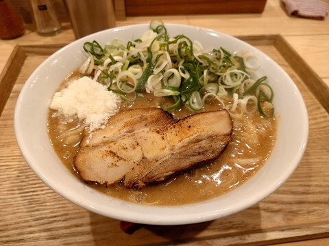 麺の上の炙られてカリッとしたチャーシューを入れ替えて