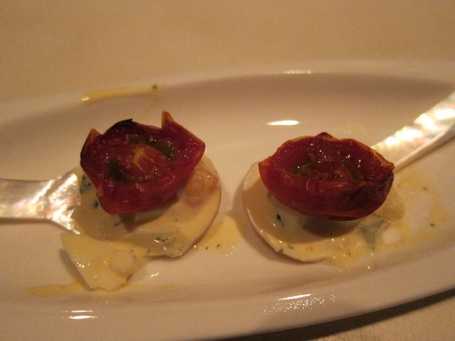 タルタルソースにドライトマトを乗っけたのん。これも旨い・・・・マスター何物?(汗