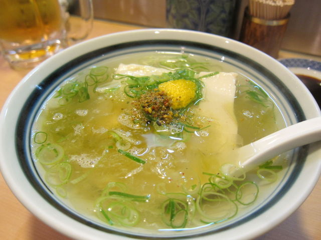 いきなり本命の湯豆腐。そうそうこのルックス。これを食べに来たのです^^ 出汁をズズッっと・・ああなるほど、これは美味しい。元々ええ出汁におぼろ昆布の味が染み出し、香りのアクセントに柚子、味のアクセントに七味。こりゃたまりませんねぇ^^